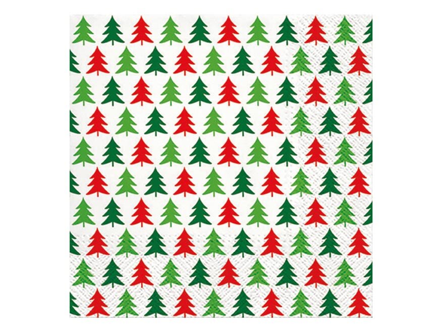 Papírové vánoční ubrousk. Kvalitní vánoční ubrousky z třívrstvého papíru s motivem stromečků. Jsou krásným vánočním doplňkem, které zpestří vánoční prostírání a vykouzlí příjemnou atmosféru.
