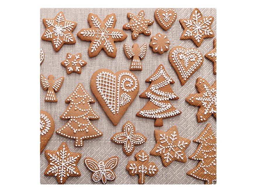 Papírový vánoční ubrousek s motivem perníčků. Je vyroben z velmi kvalitního třívrstvého papíru. Tento ubrousek je perfektní pro vánoční stůl, kde motiv perníčků navodí veselou a slavnostní náladu. Výborně se hodí při podávání dezertů nebo během odpoledních čajových a kávových posezení během svátečního období.