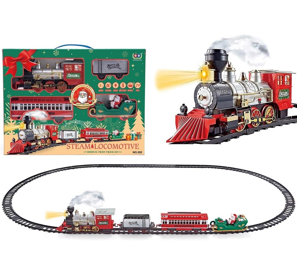 Pociąg-kolejka na baterie z saniami Mikołaja, w zestawie z torami do złożenia w kształt owalu. Ogromną zaletą jest świąteczne opakowanie. prečítať celé