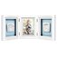 Tento biely trojrámeček kombinuje priestor pre fotografiu spolu s dvoma odtlačkami - nôžky a rúčky dieťaťa. Súčasťou balenia je praktická sada na vytvorenie odtlačkov vrátane oboch farebných pozadí - ružového aj modrého - aby ste si mohli vybrať to najvhodnejšie podľa pohlavia bábätka. Vďaka kvalitnému spracovaniu a drevenému materiálu rám krásne doplní akýkoľvek interiér a bude sa skvelo vynímať na komode alebo poličke.