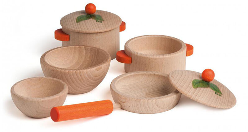 Niezbędny podczas zabawy w gotowanie zestaw drewnianych naczyń Nature marki Erzi to spełnienie marzeń każdego małego szefa kuchni. Elementy zestawu wykonane zostały z wysokiej jakości drewna buku. Zestaw zawiera: 1 duży garnek z pokrywką, 1 mały garnek z pokrywką, 1 patelnię, 1 dużą miskę oraz 1...
