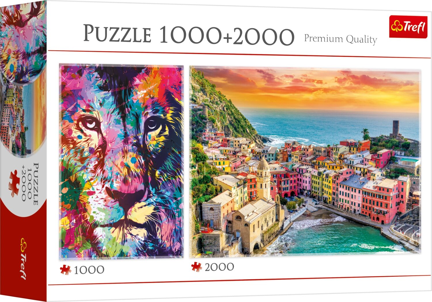 TREFL Puzzle Lev 1000 dílků + Itálie 2000 dílků