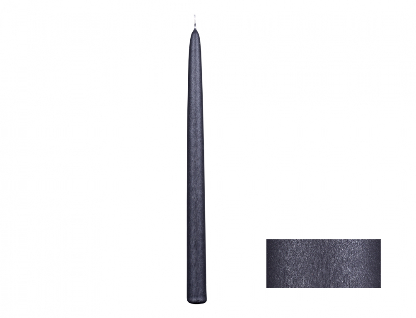 Stolní svíčka kónického tvaru. Její povrch je zdobený jemným škrábáním. Má prémiový vzhled, který pozdvihne každou dekoraci či vazbu. Doba hoření: 8 hodin. Rozměry: spodní průměr 2 cm, výška 29 cm. Barva: antracitová. prečítať celé