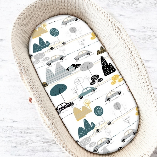Baby Nellys Dětské bavlněné prostěradlo do kočárku, koše, Auta v aleji - šedá; 90x40