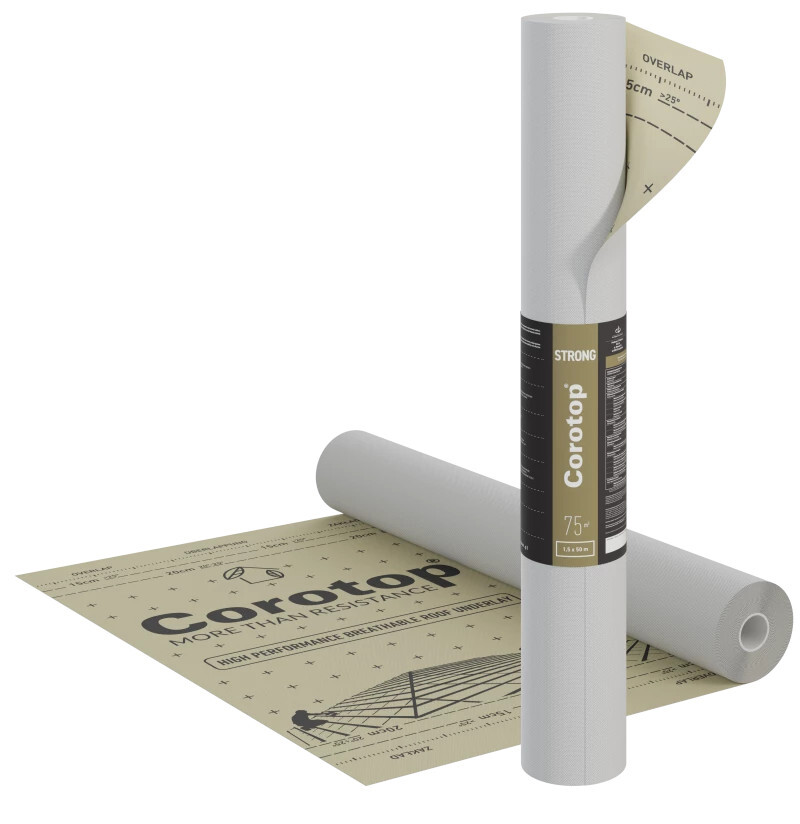 Třívrstvá paropropustná membrána s vysokou gramáží a pevnou strukturou. Nepřetrhává se i při značném zatížení a zvýšeném tření. Z tohoto důvodu je doporučována zejména pro střechy s plným bedněním. Světlá barva odráží sluneční paprsky a zajišťuje lepší izolaci. Corotop Strong je zárukou...