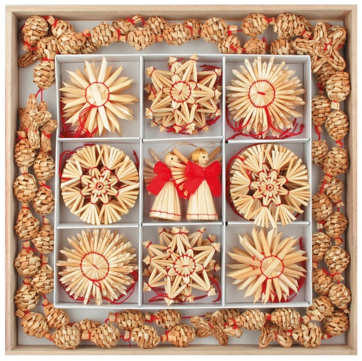 Slaměné ozdoby v krabičceOzdoby využijete k dekoračním či aranžérským účelům.Díky tenké šňůrce je snadno zavěsíte třeba na stromeček.32 kusů v krabičce, mix motivů. prečítať celé