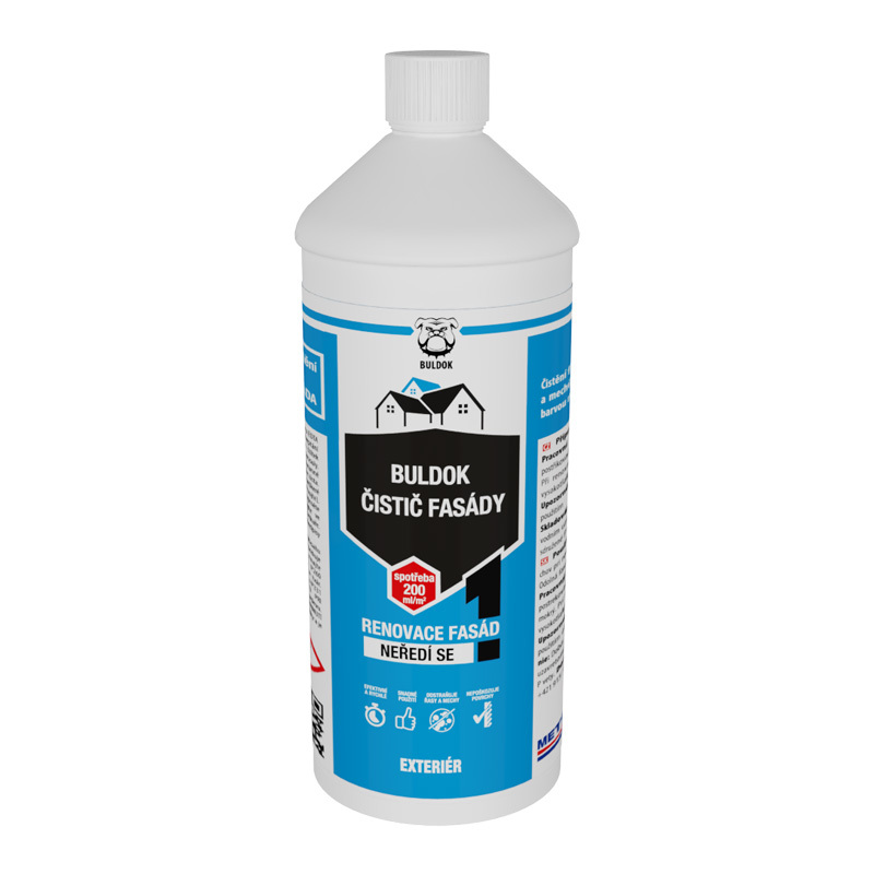 Je čisticí prostředek na odstraňování nečistot a porostů na fasádách.Čistění fasád od mechanických nečistot nebo porostů řas a mechů při renovačních pracích (před nátěrem fasádní barvou nebo přípravkem Odolná fasáda ČS). Snadné použití, neupravuje se, neředí se. Nepoškozuje čištěné povrchy....