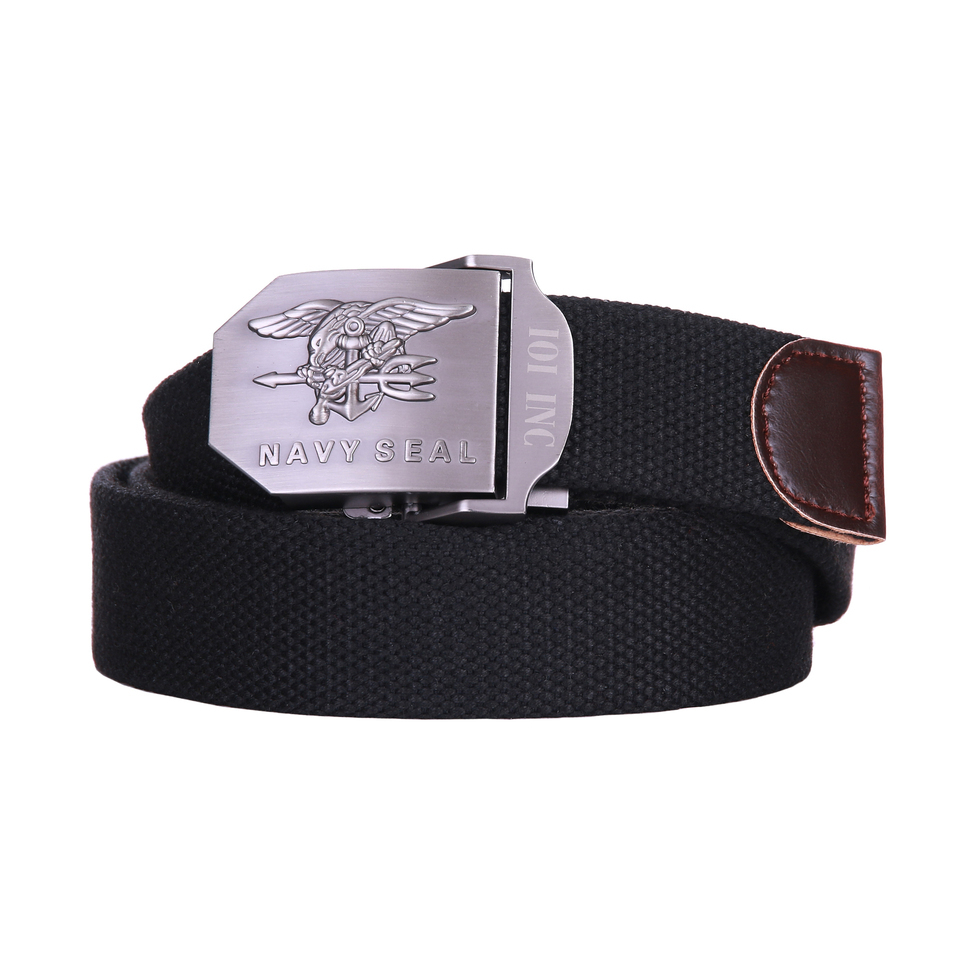 Bavlněný textilní opasek od značky 101 Inc s pevnou kovovou sponou. prečítať celé