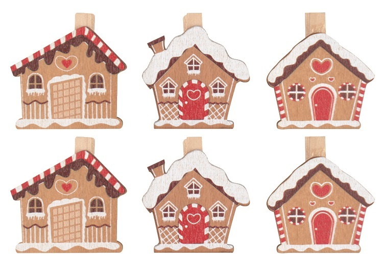Dřevěné chaloupky na kolíčkuKolíčky využijete k různým dekoračním či aranžérským účelům.Můžete je použít k ozdobení věnců či vazeb, přáníček, obálek nebo dárků.6 kusů v sáčku.  prečítať celé