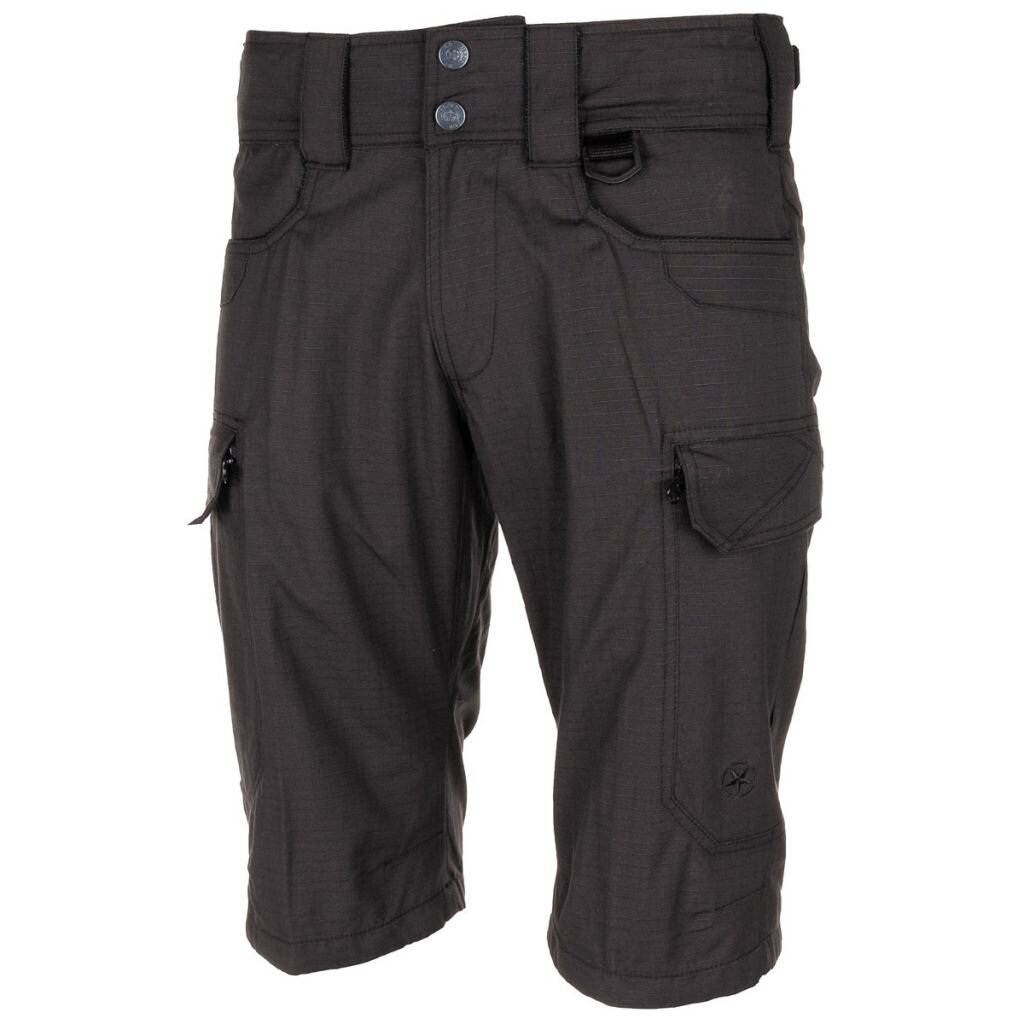 Bavlněné kraťasy v rip-stopové úpravě (omezuje trhání tkaniny) od německé značky MFH. Mají zapínání na 2 knoflíky a zip, v bocích lze suchým zipem částečně upravit obvod pasu. Na stehnech jsou 2 kapsy se zapínáním na zip YKK a suchým zipem. V bocích a v zadní části jsou rovněž kapsy. V levé straně je 1 D-kroužek.