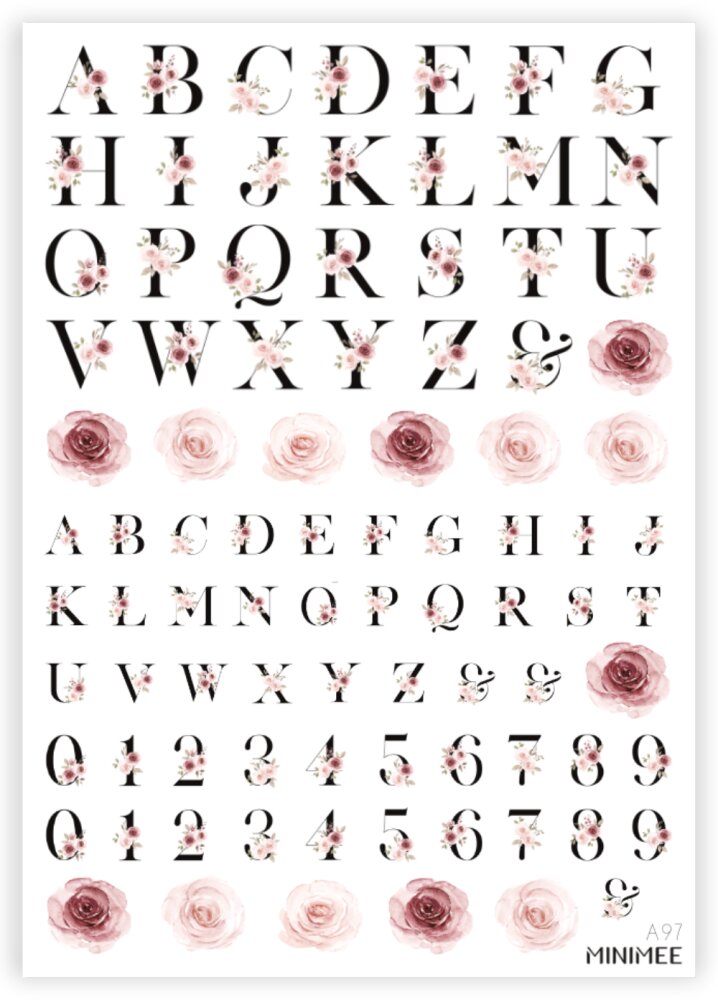 Nálepky sú vyrezávané v tvare kvetinových písmeniek a číslic vo formáte A5, čo je ideálna veľkosť pre pohodlné použitie. Ich matný a prirodzený vzhľad dodáva jemný a prirodzený estetický dojem, ktorý vynikne na farebnom aj na bielom podklade. Sú navrhnuté tak, aby perfektne ladili s papierom zápisníka MINIMEE, čo z nich robí ideálny doplnok pre vaše písacie potreby a kreatívne hobby.