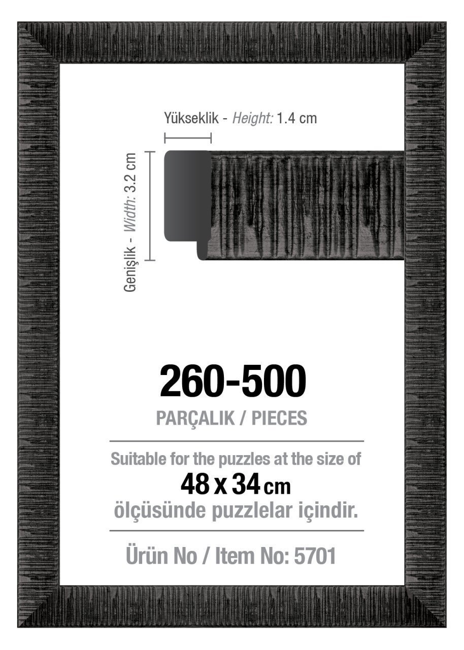 Designový rám na puzzle bez výplně o šířce cca 3cm. Rám je určen pro ART PUZZLE 500 dílků o maximálním rozměru 48 x 34 cm. Lze jej použít i pro puzzle jiných značek (stejného rozměru). Balení obsahuje: rám na puzzle, kartonovou podložku a háček na zavěšení zarámovaného puzzle. Návod...