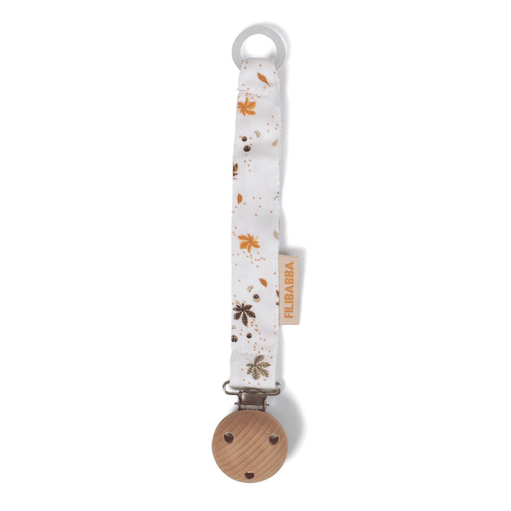 Ľahučký klip na cumlík z organickej bavlny, s detailmi v trendy jesenných farbách, dreveným gombíkom, kovovou sponou a silikónovým krúžkom.Nepostrádateľný, štýlový a šikovný klip na cumlík, ktorý perfektne zapadne do outfitu Vášho dieťatka. Je pripevnený k oblečeniu a zaisťuje, že obľúbený cumlík...