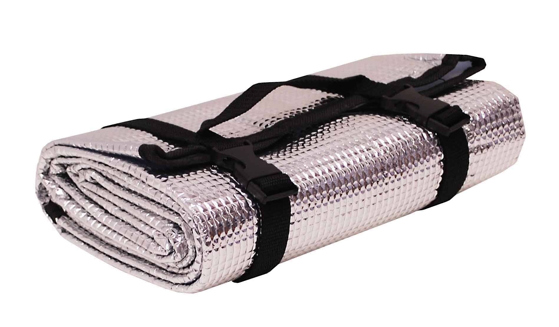 Hliníkem potažená ochranná podložka. Karimatka je omyvatelná, lehká a velmi dobře skladná.
