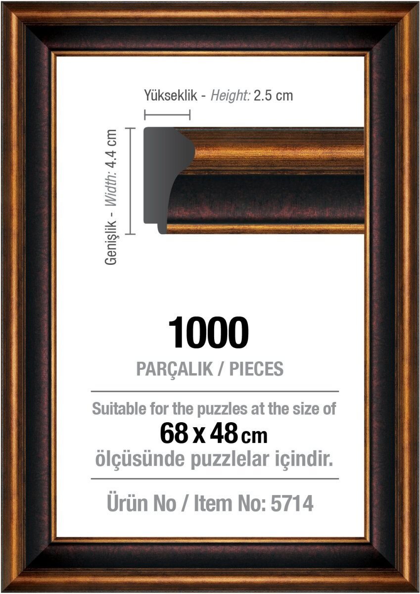 Designový rám na puzzle bez výplně. Rám je určen pro ART PUZZLE 1000 dílků o maximálním rozměru 68 x 48 cm. Lze jej použít i pro puzzle jiných značek (stejného rozměru). Balení obsahuje: rám na puzzle, kartonovou podložku a háček na zavěšení zarámovaného puzzle. Návod Nejprve puzzle slepte...