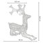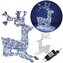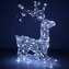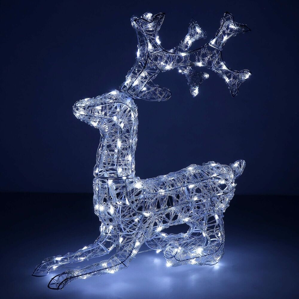 Majestátní ležící sob se vztyčenou hlavou, vysokým parožím a konstrukcí zdobenou výpletem. Úžasná 3D světelná dekorace vhodná pro vnitřní i venkovní použití, voděodolné provedení, krytí IP44. Úsporné diody, časovač, barva studená bílá. Délka 60 cm, 130 LED, napájecí kabel 3 m.