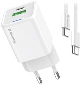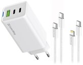 COLORWAY 2x USB-C, 1x USB-A/ síťová nabíječka/ GaN/ PD/ PPS/ 65W/ Včetně 2x kabelů, USB-C-USB-C, USB-C-Lightning/ Bílá