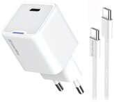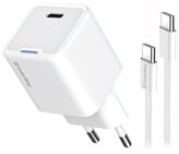 COLORWAY 1x USB-C/ síťová nabíječka/ GaN/ PD/ PPS/ 25W/ Včetně 100cm kabelu/ Bílá