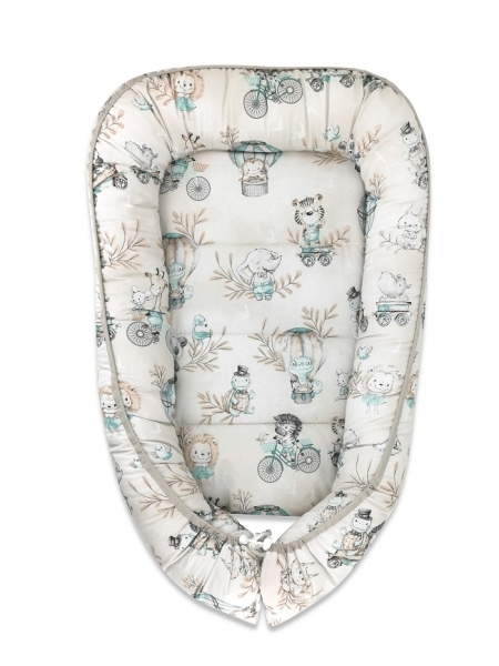 Bavlněné oboustranné hnízdečko , 55 x 75 cm, ZOO na cestách - cappuccino/mátová
