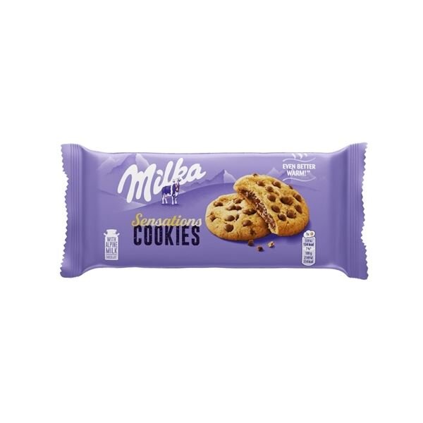 Sušenky s kousky mléčné čokolády z alpského mléka (15,4 %) a náplní (26 %) s mléčnou čokoládou (4,5 %);Hmotnost 156 g prečítať celé