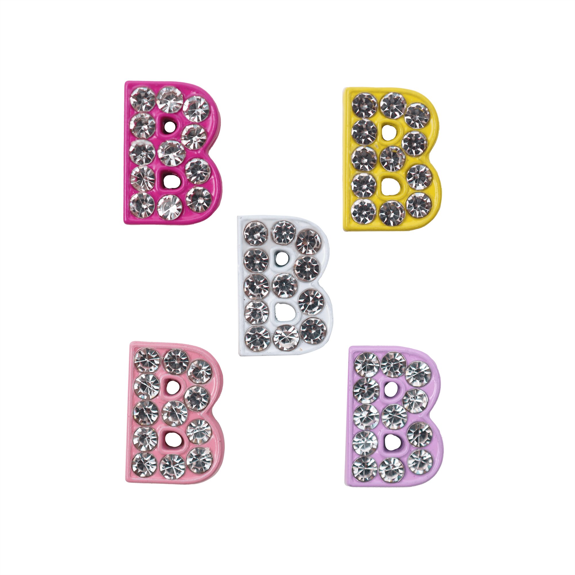 Písmeno B Prívesok na náramok 10 ksOzdôb si náramok svojim menom!Farebný prívesok na náramok s kamienkami písmeno B švédskej značky Nojomojo krásne doplní 8mm náramky rovnakej značky. Farby písmeniek sú vyberané náhodne, buď v bielo, žltej, svetlo fialovej, svetlo ružovej alebo fuchsiovej farbe....