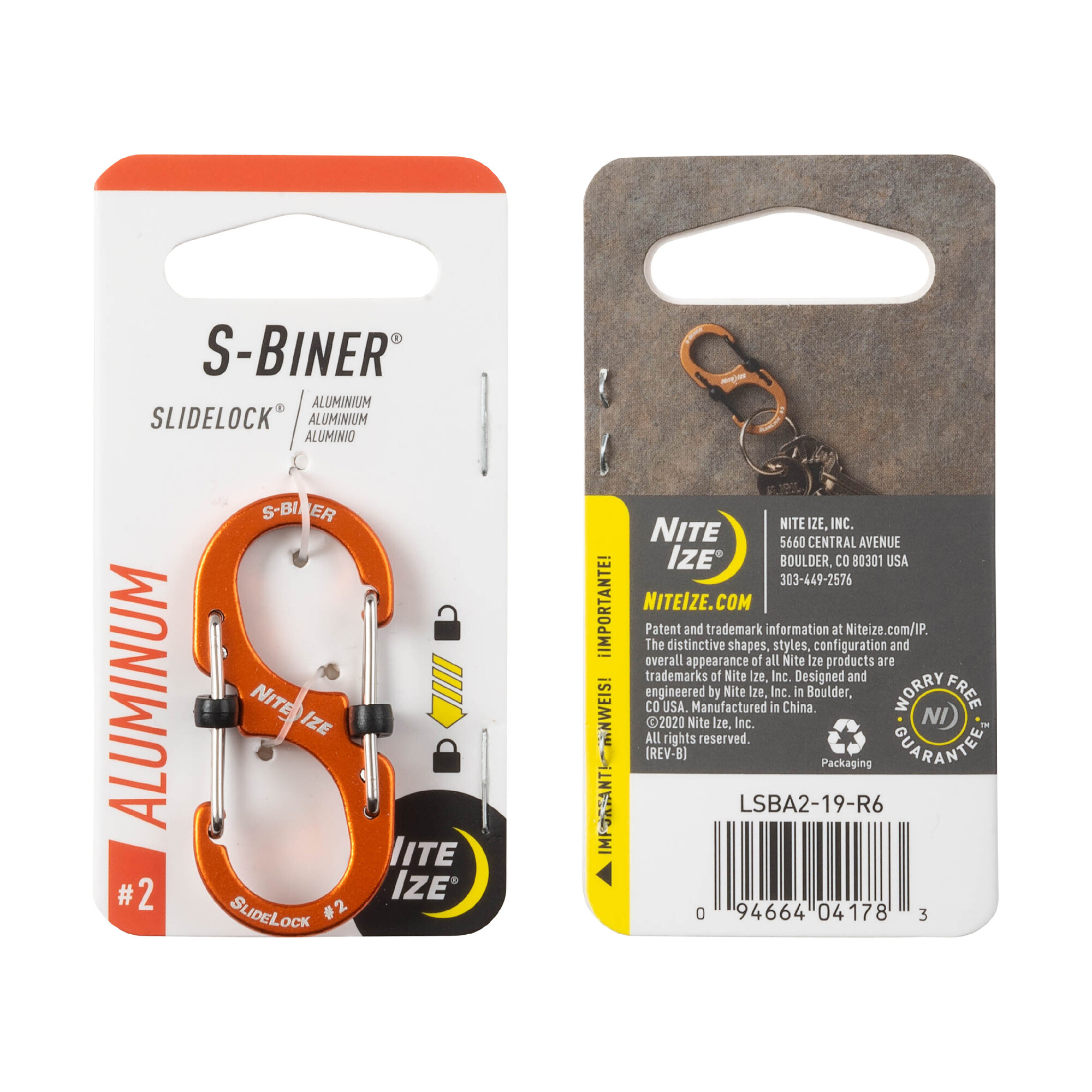 Nite Ize S-Biner SlideLock Hliníková oboustranná karabina s pojistkou #2 oranžová