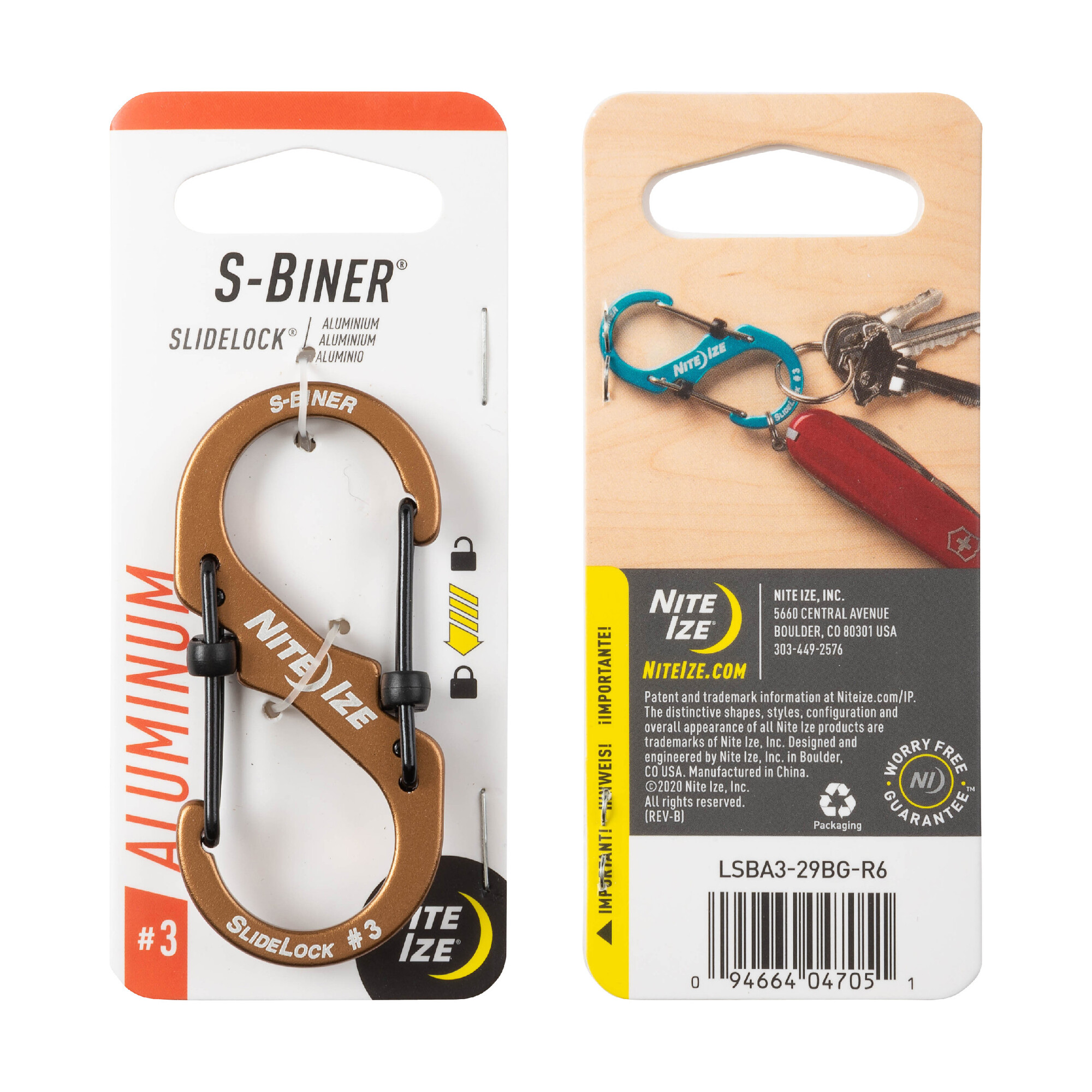 Nite Ize S-Biner SlideLock Hliníková oboustranná karabina s pojistkou #3 COYOTE