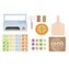 Pizza set obsahuje všetko, čo dieťa potrebuje na prevádzkovanie vlastnej pizzerie: pec, pizzové cesto, prísady, soľ, korenie, dosku do pece, krabicu na pizzu... Všetko je vyrobené z kvalitného dreva a netoxických farieb.