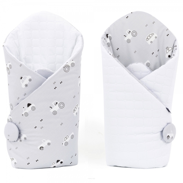 Oboustranná zavinovačka VELVET/BAVLNA - Auta, šedá/bílá - 1ks