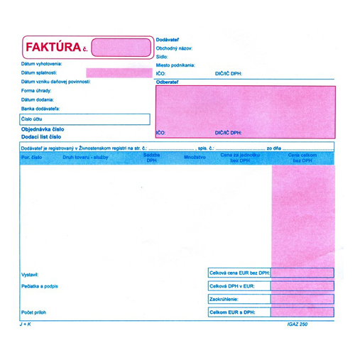 Faktúra - daň. doklad 21 x 20 cm, dvojfarebná prečítať celé