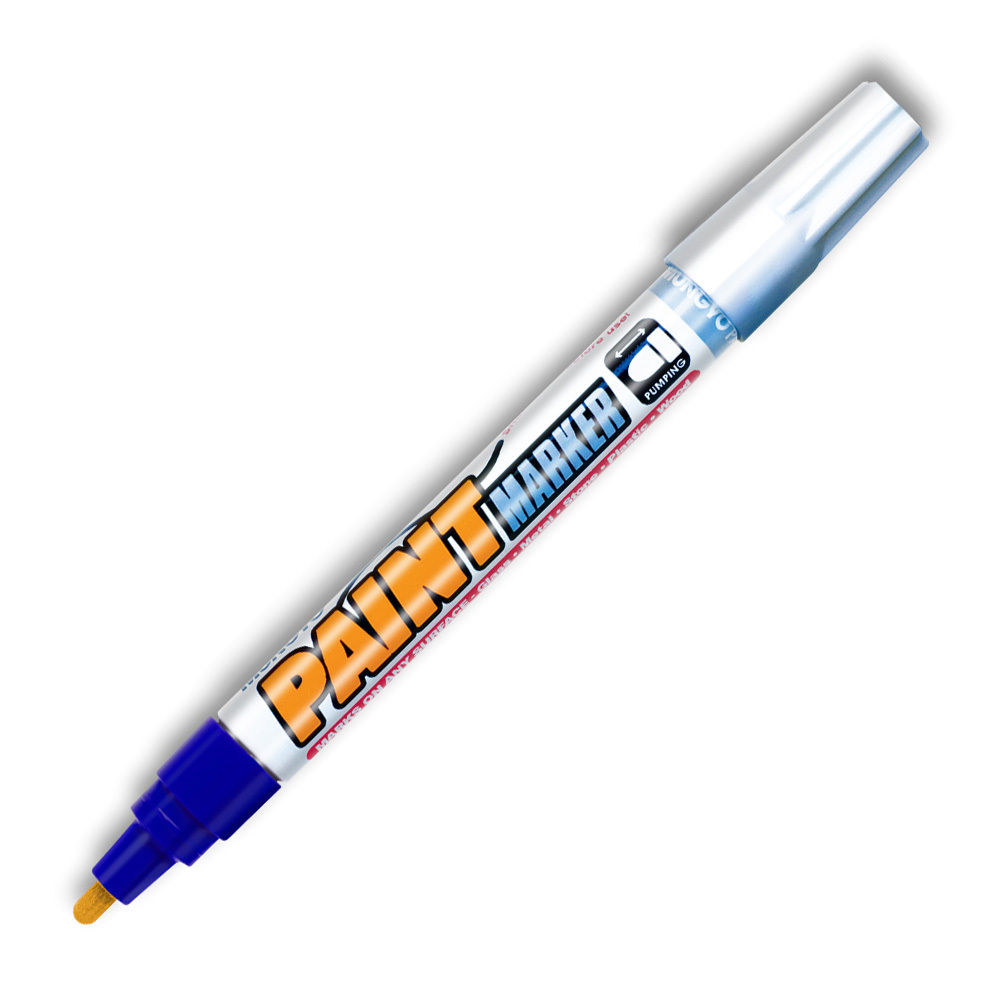 Olejový popisovač s kulatým psacím hrotem v hliníkovém těle.
