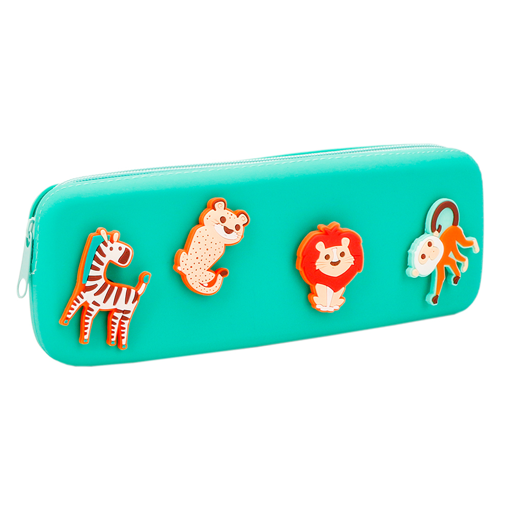 Menší pouzdro na psací potřeby s 1 zipem pro nejmenší.s otáčecími, pryžovými zvířátky na vrchní straněsnadno omyvatelný materiál (silikon)rozměrem vhodný do dětského batůžku prečítať celé