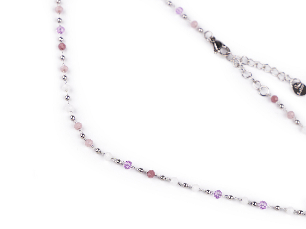 Jemný ketlovaný náhrdelník je vyrobený z kvalitní nerezové oceli. Je ozdobený broušenými a kovovými korálky. Broušené korálky se jemně třpytí, náhrdelník se hodí k slavnostním šatům i na běžné nošení, má velice všestranné využití.Zapíná se na karabinku a prodlužovací řetízek.