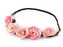 Bohémská čelenka s romantickými květy skvěle ozdobí váš účes. Květy jsou zajímavě probarvené, s drobnými pestíky. Jsou připevněné k copánku z voskovaných šňůrek. Do copánku je vpletený prýmek s lístečky.