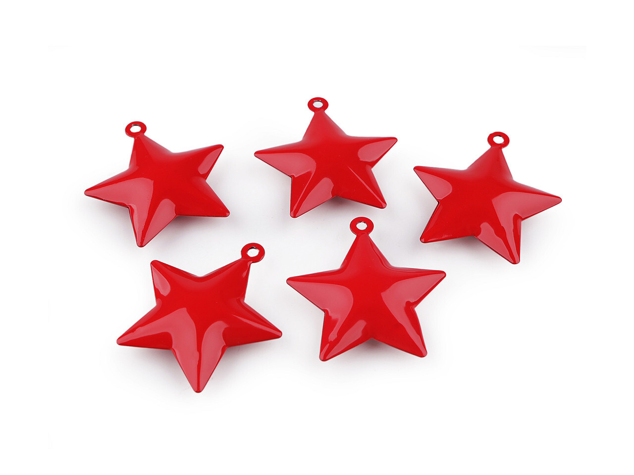 Rolničky stromeček, hvězda - 5 ks - 2 červená hvězda