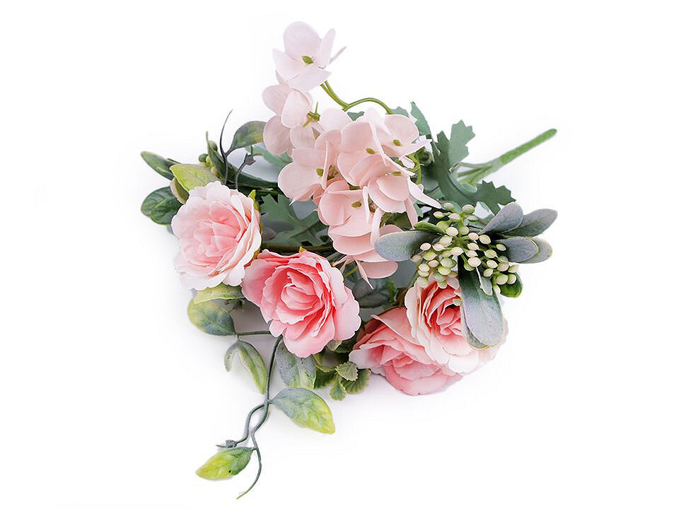 Umělé kytice růže, hortenzie - 1 ks - 2 růžová světlá