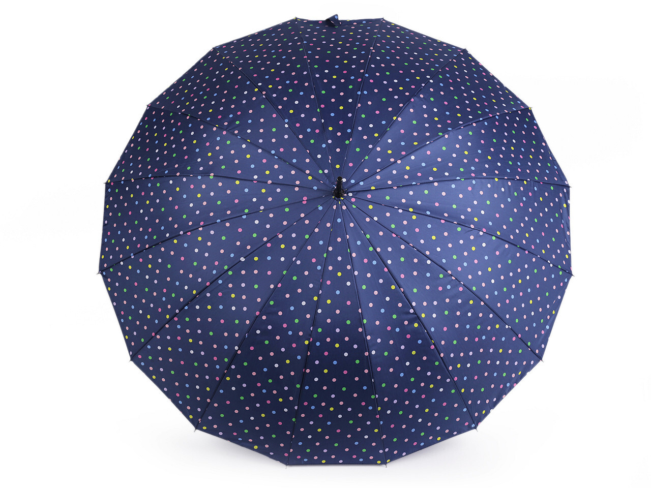 Velký rodinný deštník s puntíky - 1 ks - 2 modrá tmavá