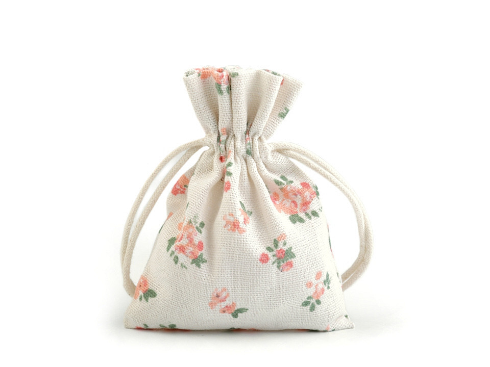 Dárkový pytlík 10x12 cm bavlněný s květy - 10 ks - režná světlá