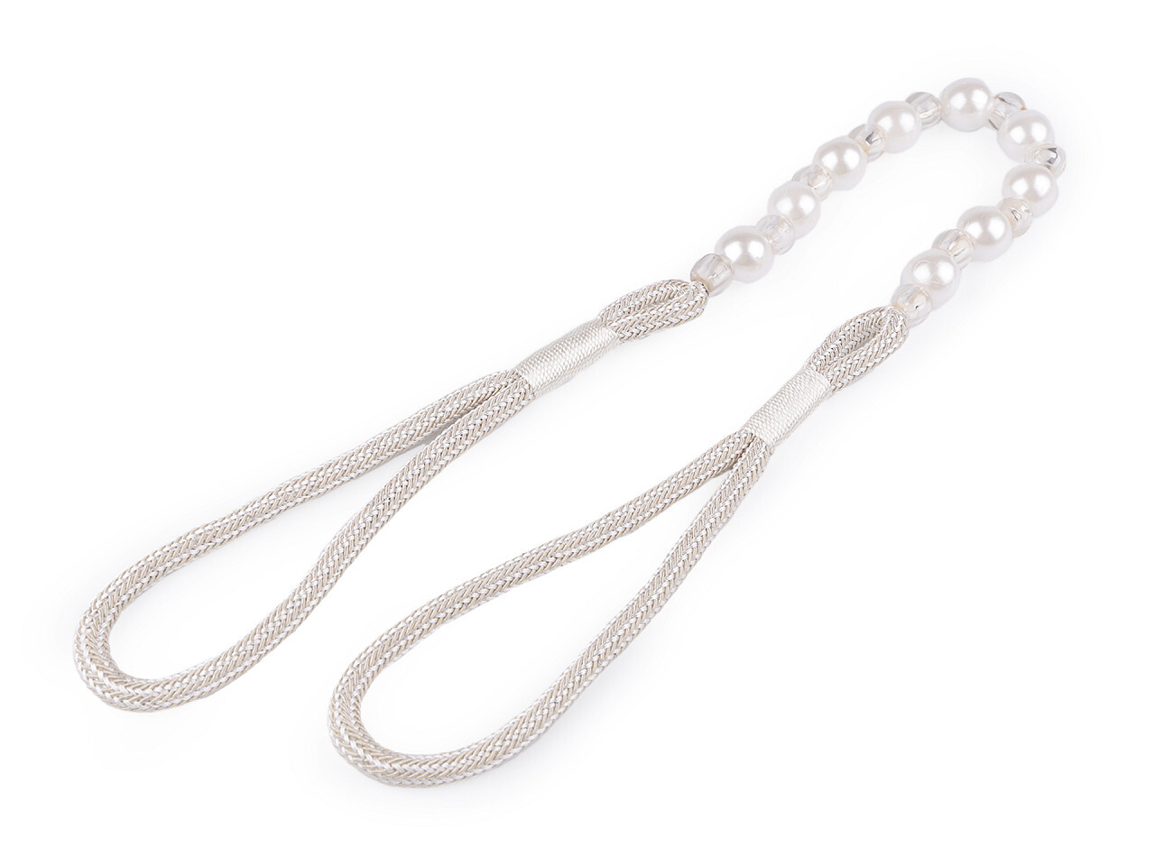 Dekorační úvaz / šňůra na závěsy perly - 2 ks - 1 krémově bílá