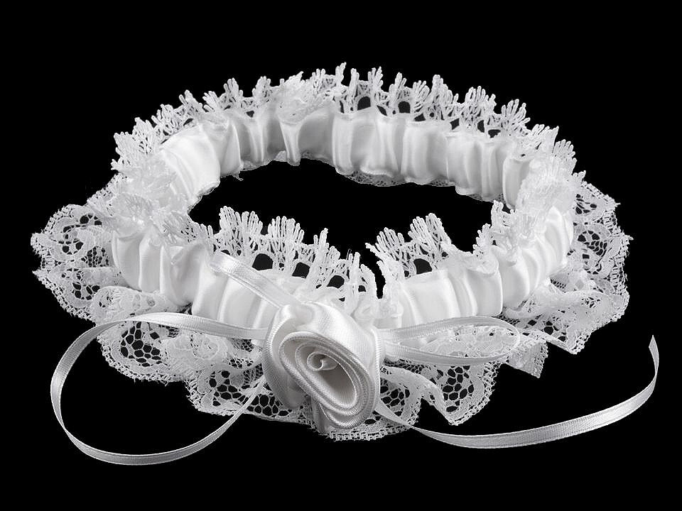 Podvazek Ø 11 cm, obvod volně položený 34 cm, výška v rozmezí od 60 – 80 mm. Dá se natáhnout na obvod stehna do 54 cm. Ve svatební den má mít nevěsta na sobě něco starého, něco nového, něco půjčeného a něco modrého. Stará věc jí má připomínat, s čím se loučí. Nová věc je symbolem nového života a vypůjčená připomíná přátelství, které je třeba dále pěstovat. Nesmí chybět modrý podvazek, protože modrá je barva věrnosti.