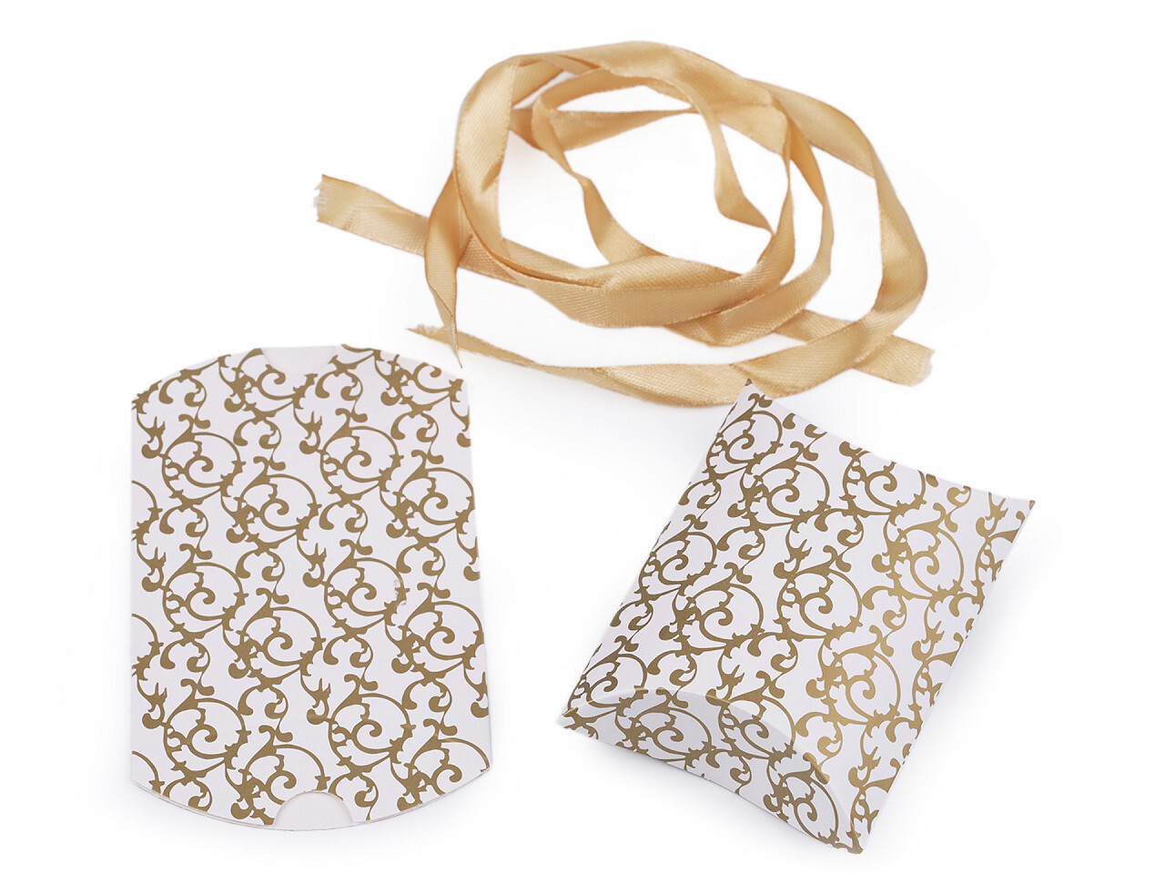 Papírovou krabičku s mašlí využijete na zabalení drobného dárku. Má tvar polštářku, tzv. pukačka, součástí balení je i saténová stuha na ovázání. Krabička je ozdobená potiskem s ornamentem. Můžete do ní uložit malé dárečky. Je vhodná na svatby, narozeniny, vánoce i Valentýna. prečítať celé