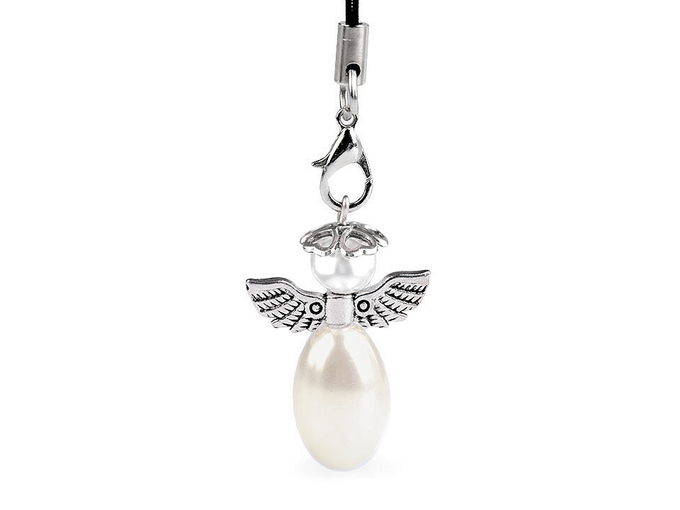 Roztomilý andělský přívěsek je dárkem pro štěstí, jenž se dá využít pro jakoukoliv příležitost. Může být milou vánoční dekorací. Díky poutku se může malý andělíček kamkoliv zavěsit. Je krásný jako ozdoba kabelky, klíčů apod. Na konci poutka má odepínací karabinku. Samotné poutko je dlouhé 4,5 cm....