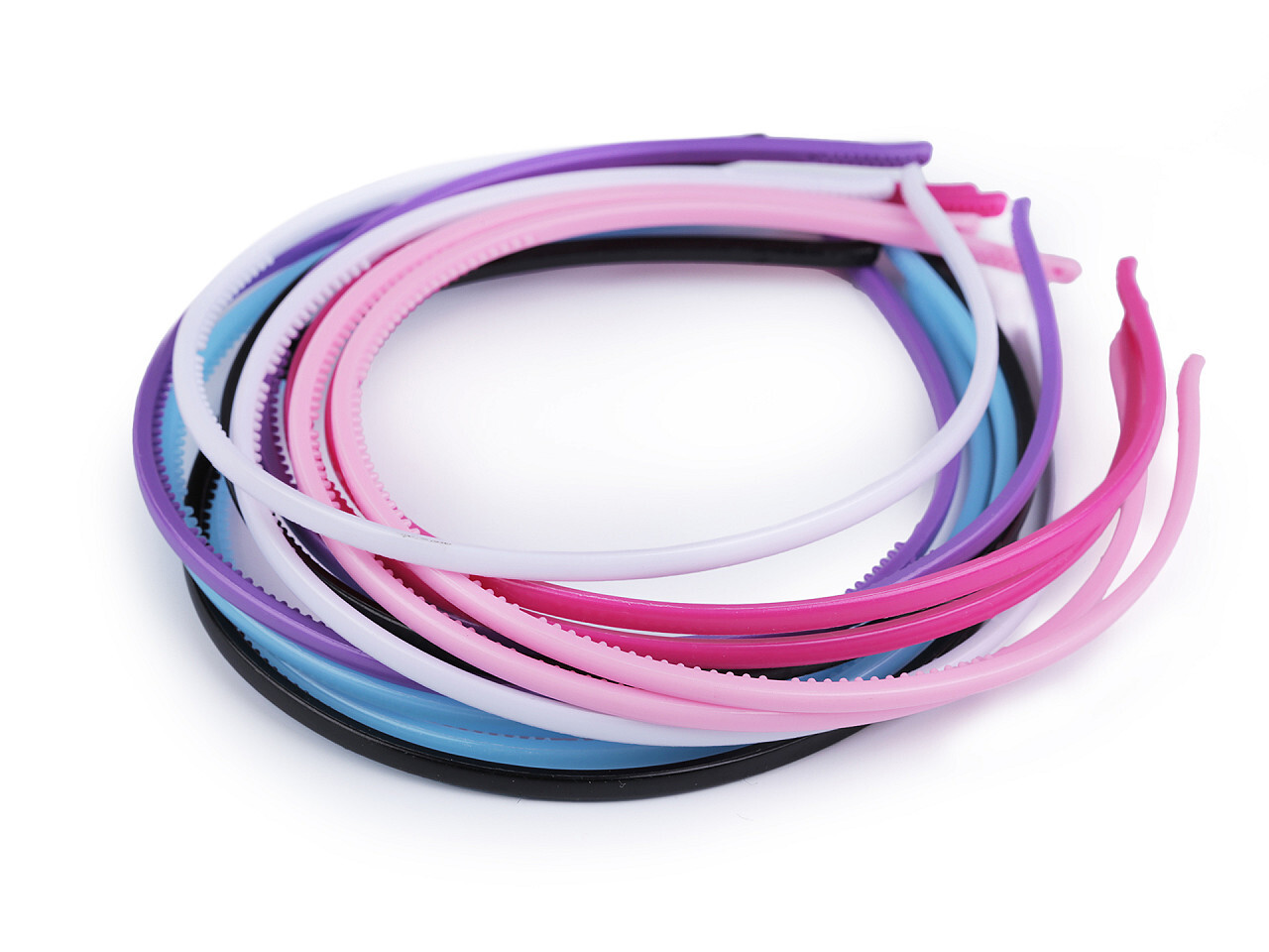 Plastové úzké čelenky o šířce 4 mm. Jedno balení obsahuje 12 ks čelenek v různých barvách. Můžete je používat samostatně, ale také dohromady. Když si zvolíte dvě barevně odlišné čelenky a sladíte je se svým outfitem, budete vypadat moderně a zajímavě. Barevné kombinaci se meze nekladou, záleží na vás, jakou barvou se ozdobíte.