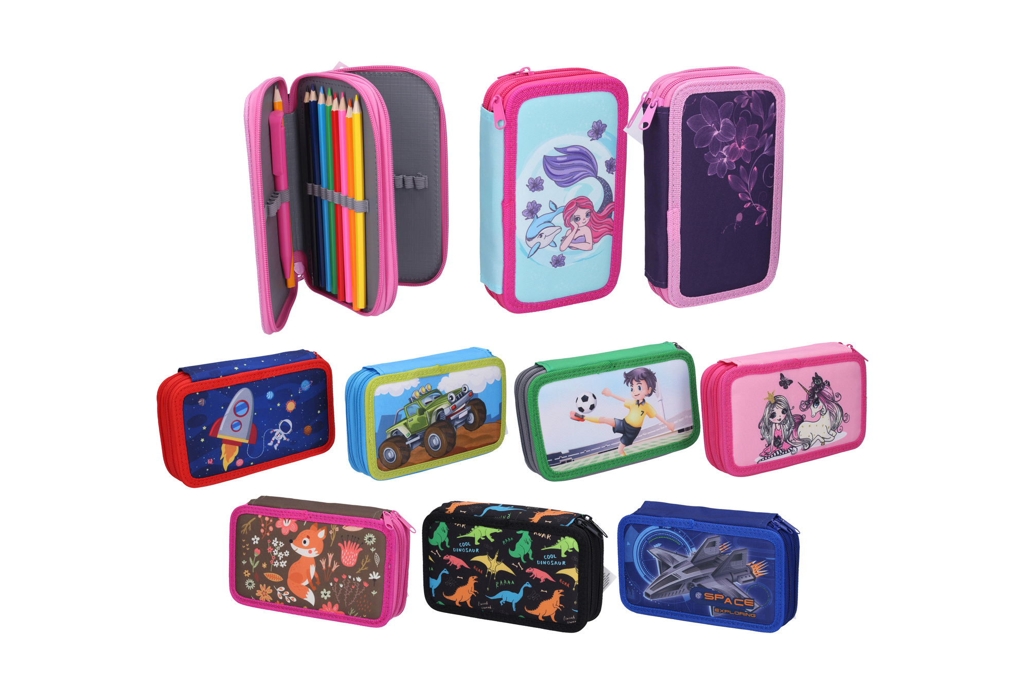 Dvoupatrový penál s výbavou je určen pro žáky základní školy. Každé jednotlivé patro se uzavírá na samostatný zip. Pouzdro má pružné gumové poutka pro uložení psacích potřeb.Školní penál obsahuje základní psací pomůcky.Rozměry: 19,5 x12 cm prečítať celé