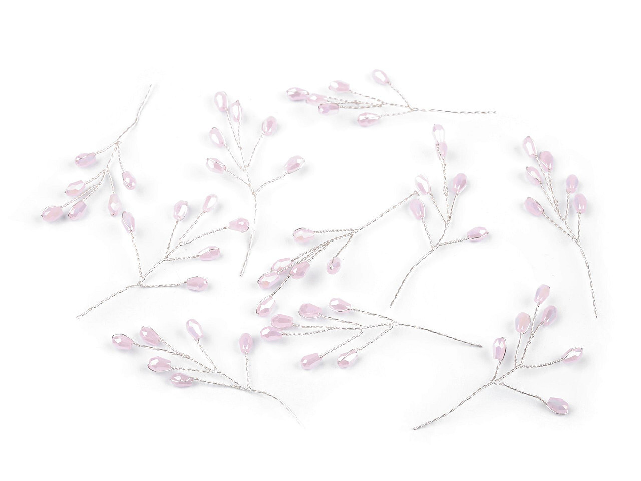 Malou větvičku s broušenými korálky ve tvaru kapky využijete jako svatební i vánoční ozdobu. Korálky mají povrchovou úpravu s AB efektem, nádherně se třpytí. Můžete ji zakomponovat do věnců, svícnů nebo květinových vazeb. Vynikne také volně položená na sváteční tabuli. Hodí se i k výrobě fascinátorů, korunek, věnečků a jiných vlasových doplňků, díky drátkům ji můžete lehce tvarovat. Dají se využít i k výrobě voniček.