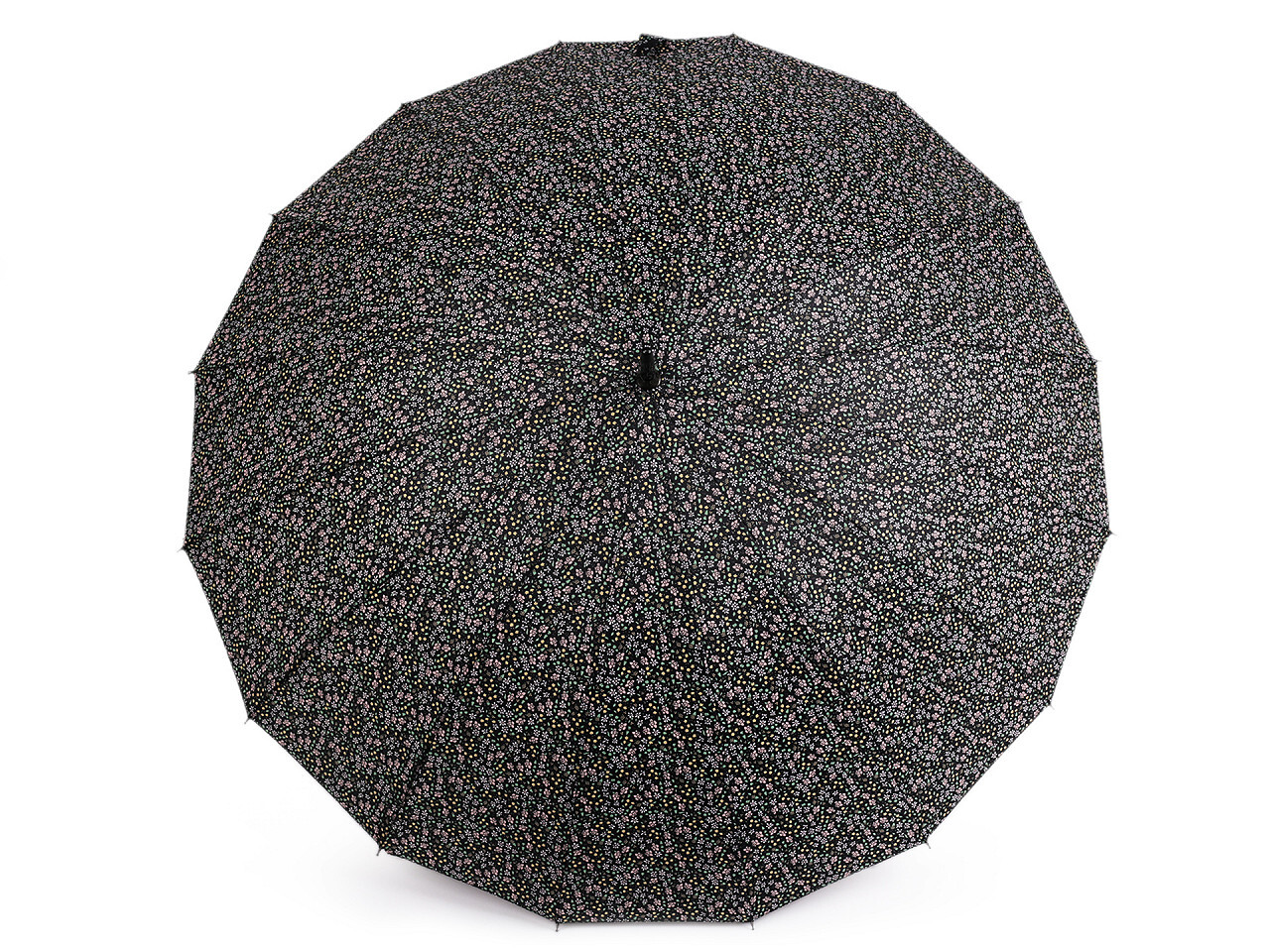 Velký dámský vystřelovací deštník se vzorovaným potahem drobných květů vás spolehlivě ochrání před nepřízní počasí. Skládá se z 16 výsečí, díky kterým se deštník řadí mezi luxusní kousky. Konstrukce je vyrobená z pružných lamel zajišťujících vysokou pevnost a stabilitu. UV filtr vás ochrání před slunečním zářením. Deštník má klasickou tyč zakončenou pevnou rukojetí.