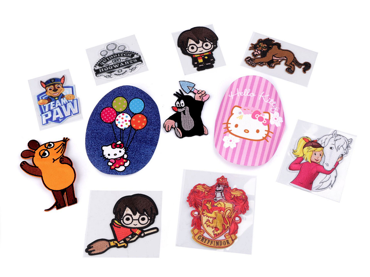 V mixech se mohou vyskytovat ve větším počtu stejné dezény. Balení obsahuje dětský mix dezénu i velikostí. Nažehlovačky mají šíři 35 - 85mm, výšku 55 - 115 mm. Jedná se o značkové motivy. V mixech se mohou objevit postavy superhrdinů Marvel, Disney, postavy z Medvídka PÚ, Doby ledové, Hledá se...