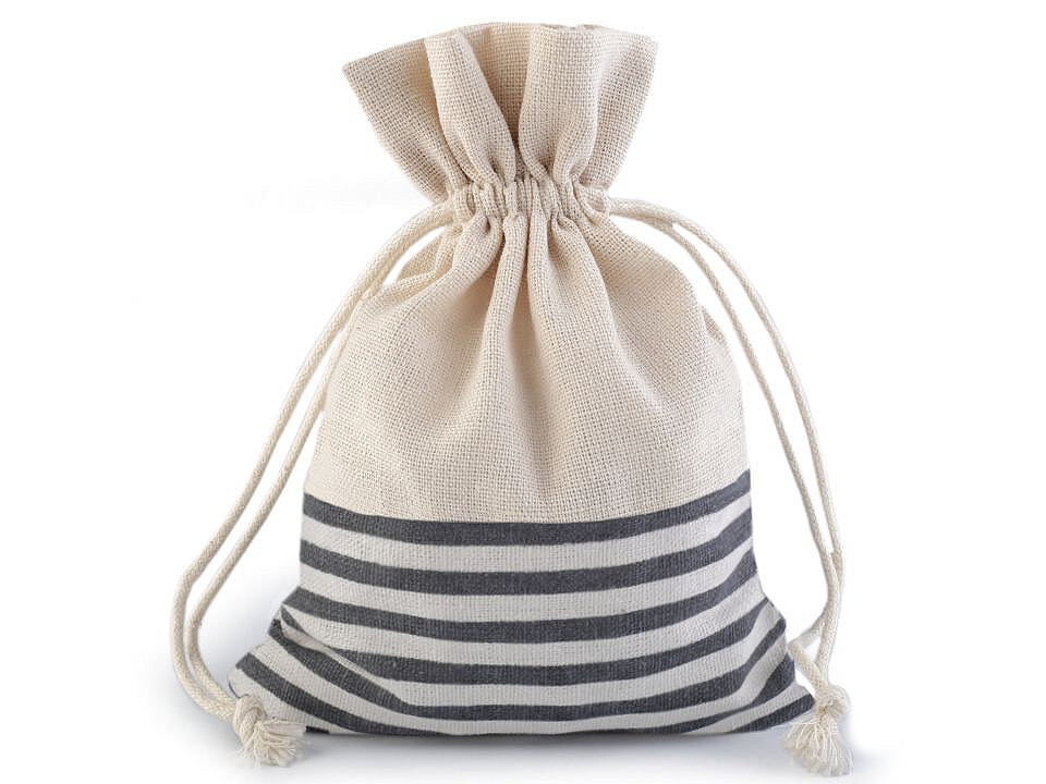Dárkový pytlík 13x18 cm lněný s proužky - 10 ks - 3 šedá