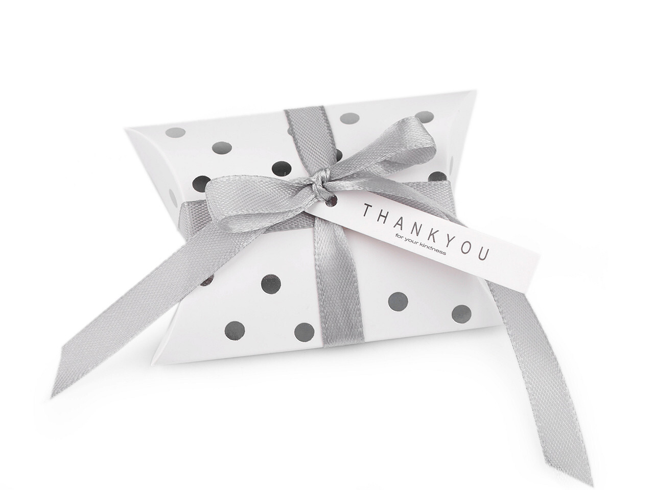 Papírová krabička se stuhou a visačkou 6,5x9 cm puntíky - 10 ks - 1 bílá stříbrná