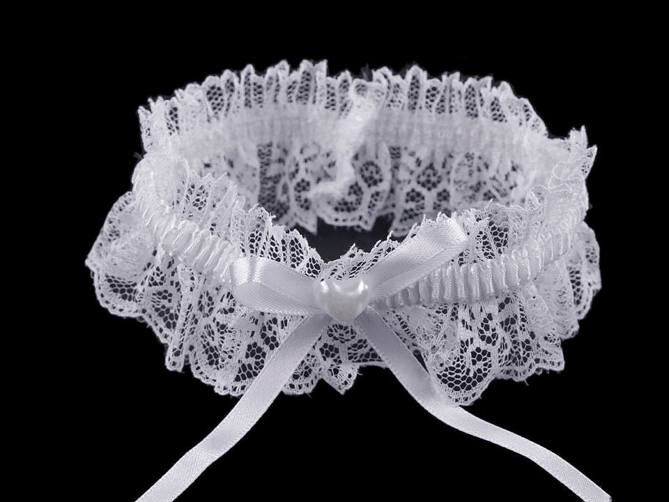 Svatební podvazek krajkový se srdcem - 1 ks - 1 bílá